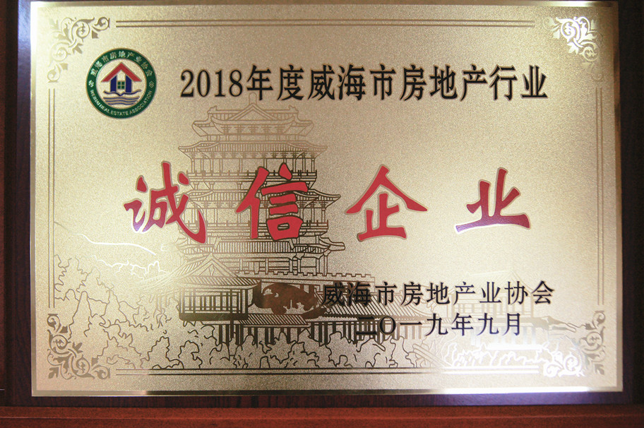 獲獎名稱:2018年度威海市房地產(chǎn)行業(yè)誠信企業(yè) 獲獎單位:威海市房地產(chǎn)協(xié)會 頒發(fā)單位:威海市房地產(chǎn)業(yè)協(xié)會