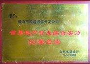 獲獎名稱:省房地產(chǎn)開發(fā)綜合實力50強企業(yè) 獲獎單位:威海市城建綜合開發(fā)公司 授獎單位:山東省建設廳