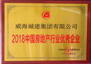 成果名稱:2018中國房地產(chǎn)行業(yè)優(yōu)秀企業(yè),獲獎單位:威海城建集團有限公司,頒發(fā)單位:中國房地產(chǎn)行業(yè)管理協(xié)會