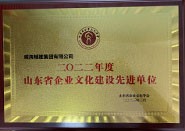 成果名稱:山東省企業(yè)文化建設先進單位 獲獎單位:威海城建集團有限公司,頒發(fā)單位:山東省企業(yè)文化學會