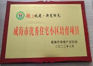 成果名稱:威海市優(yōu)秀住宅小區(qū)培育項目 獲獎單位:城建·新苑陽光 頒發(fā)單位:威海市房地產(chǎn)業(yè)協(xié)會