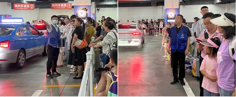 “請您到這邊排隊上車”“行李我幫您提”“請小心身后車輛”,活動當天,地下車庫高溫悶熱,城建集團“WE先鋒”黨員志愿者們汗流浹背,衣服全部濕透,但大家無怨無悔,不畏高溫酷暑,堅持奮戰在客運一線,他們始終面帶笑容,不畏辛苦勞累,認真履職,贏得了過往乘客的一致好評。