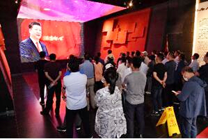 走進歷史選擇廳,集團黨員一起穿越了120多年的時光隧道,共同回顧了甲午戰(zhàn)爭以來中華民族救亡圖存的曲折歷程,深刻理解了歷史和人民為什么選擇共產(chǎn)黨、為什么選擇社會主義等重大話題,進一步增強了對社會主義的理論自信、道路自信、制度自信、文化自信。面對黨旗,集團黨委副書記孫曉東同志帶領(lǐng)全體黨員一起重溫入黨誓詞:“我志愿加入中國共產(chǎn)黨……為共產(chǎn)主義奮斗終身,隨時準(zhǔn)備為黨和人民犧牲一切,永不叛黨。”鏗鏘有力的宣誓聲久久回蕩在館內(nèi),深深感染了現(xiàn)場所有人……
